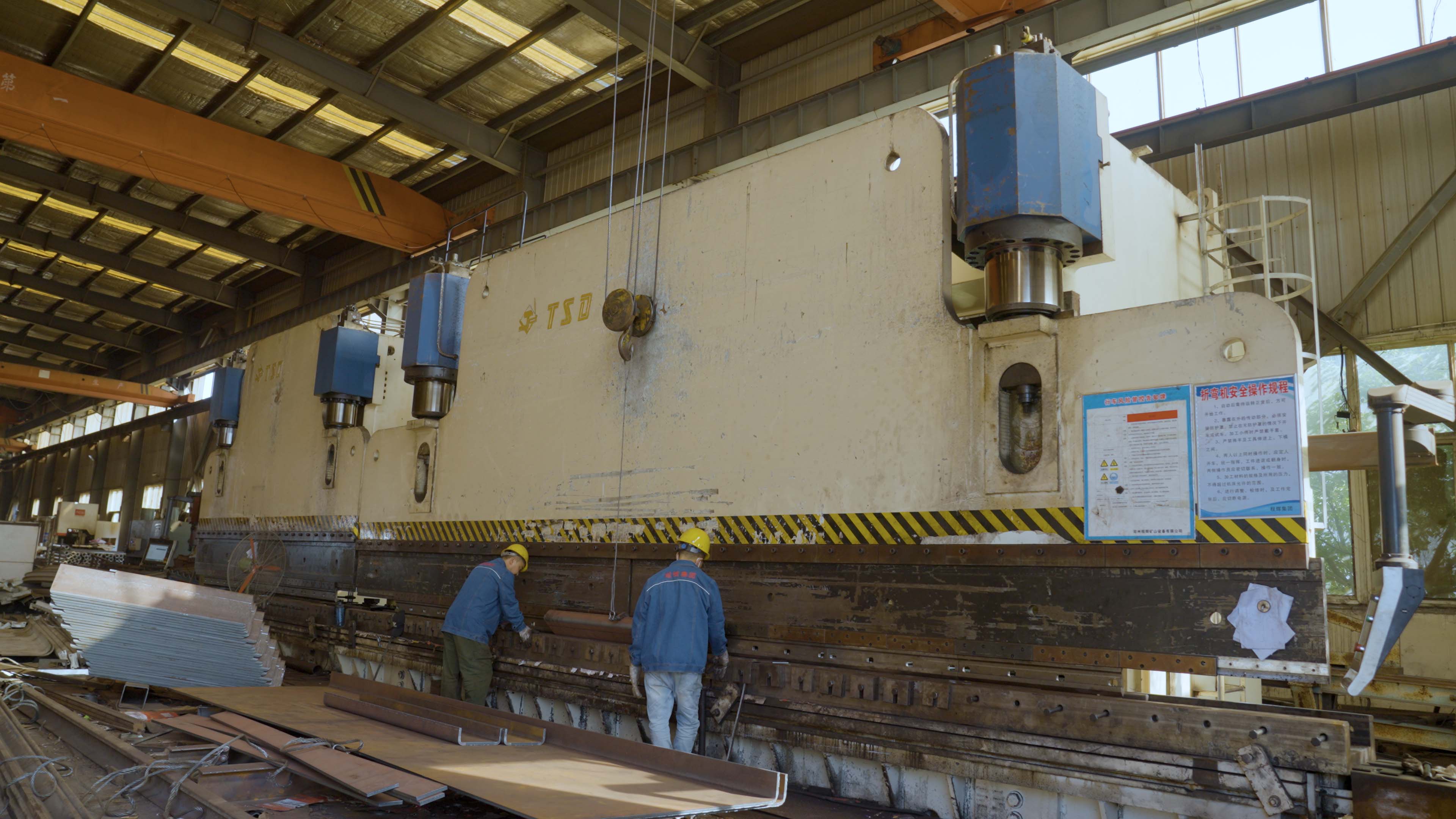 該壓彎?rùn)C(jī)一次可壓13米長(zhǎng)的鋼板成型;